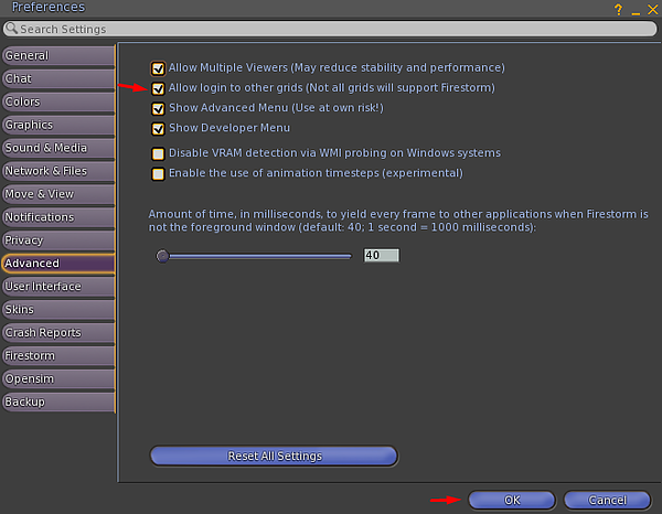 Select the "Opensim" tab.