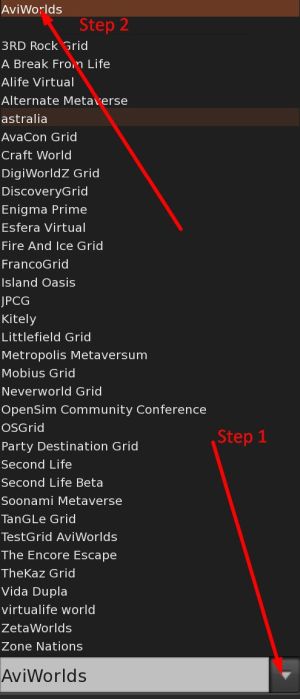 Choose the down arrow on Grid: "found in step 1" Then select AviWorlds "step 2"